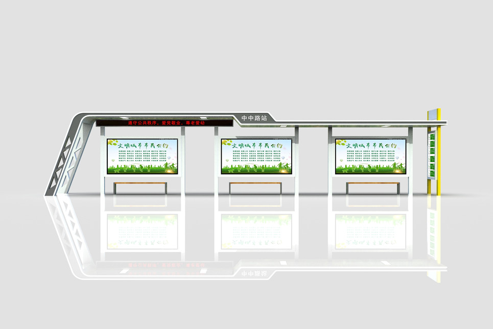 公交候车亭的设计在节能环保方面确实可以做出很多努力,并已经有相应的措施被采纳。以下是一些关于公交候车亭设计的节能环保措施的描述。首先,公交候车亭设计应充分利用自然资源,如太阳能、风能等。可以在候车亭的屋顶安装太阳能光伏板,通过大阳能转化为电能为候车亭提供照明、凉风等所需能源。这种能源的使用不但可以减少对传统电力的依赖,还能减少二氧化碳等温室气体的排放。其次,公交候车亭的隔热性能也非常关键。可以使用对热阻性能良好的建筑材料,如隔热玻璃、隔热墙体等,以减少热量的传递。在夏天,公交候车享设计可采用遮阳材料,如充气惊棚或遮阳蓬,以减少太阳直射对候车亭内的热量产生影响,在冬天,可以增加保温材料,如保温棉等,以减少室内热量的散失。这样的设计不但可以提高候车享的舒适度,还能减少对空调和暖气等设备的依赖,进而降低能源消耗。再次,公交候车享设计可以通过智能化控制系统来实现节能环保。候车亭内可以安装传感器,通过感应候车人数、环境温度等参数自动调节照明、通风,空调等设备的开关和运行状态。公交候车亭厂家也可以在候车亭内设置智能化显示屏,通过实时显示公交车到达时间、车辆信息等,减少候车人员的等待时间,提高候车效率,这样的智能化控制系统不仅可以提高公交候车亭的能效率,还可以提升用户体验。