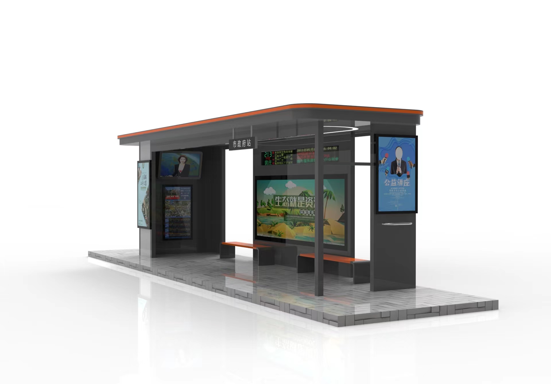 智能公交候车亭,不仅仅是一个等待公交车的地方,更是一座充满科技与关怀的城市驿站。它拥有清晰明亮的电子站牌,实时显示公交车的准确位置和预计到达时间,让您告别盲目等待的焦虑。